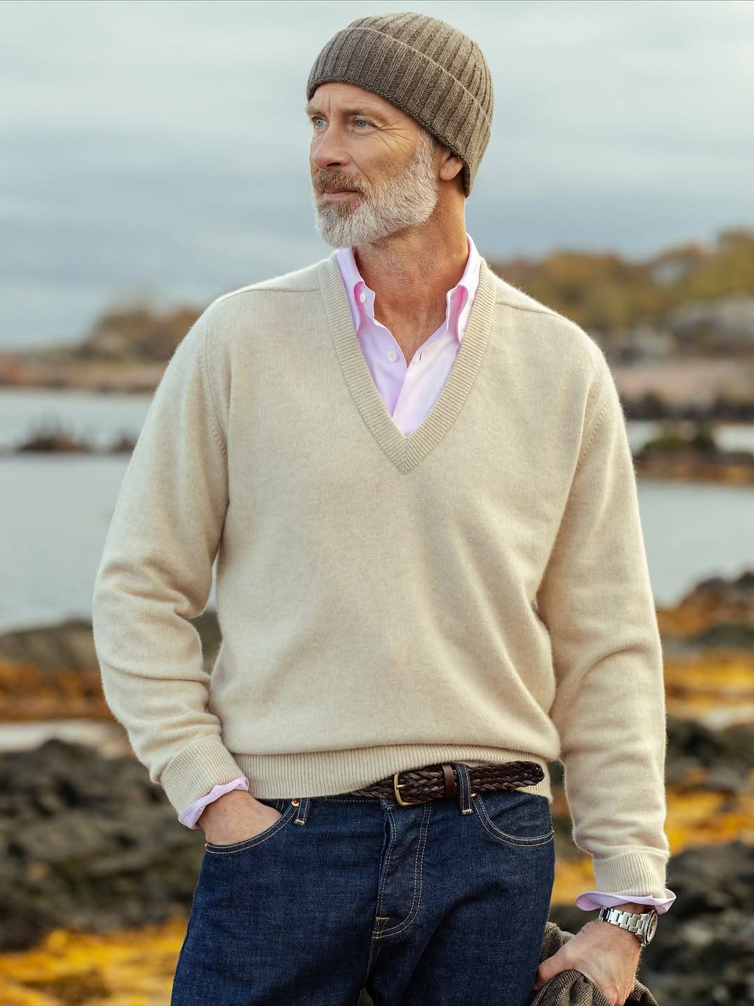 与整体造型的匹配此夹克的面料选择完美契合Paul Smith的英国乡村美学:tweed源于苏格兰猎装传统,搭配牛仔裤和贝雷帽,营造出优雅的“off-duty”绅士感。图像中男模的银灰胡须与棕色调呼应,突出面料的成熟魅力。总体而言,Paul Smith Dartford夹克是品牌精髓的体现——传统工艺遇上现代生活,面料不仅是材质,更是故事载体。